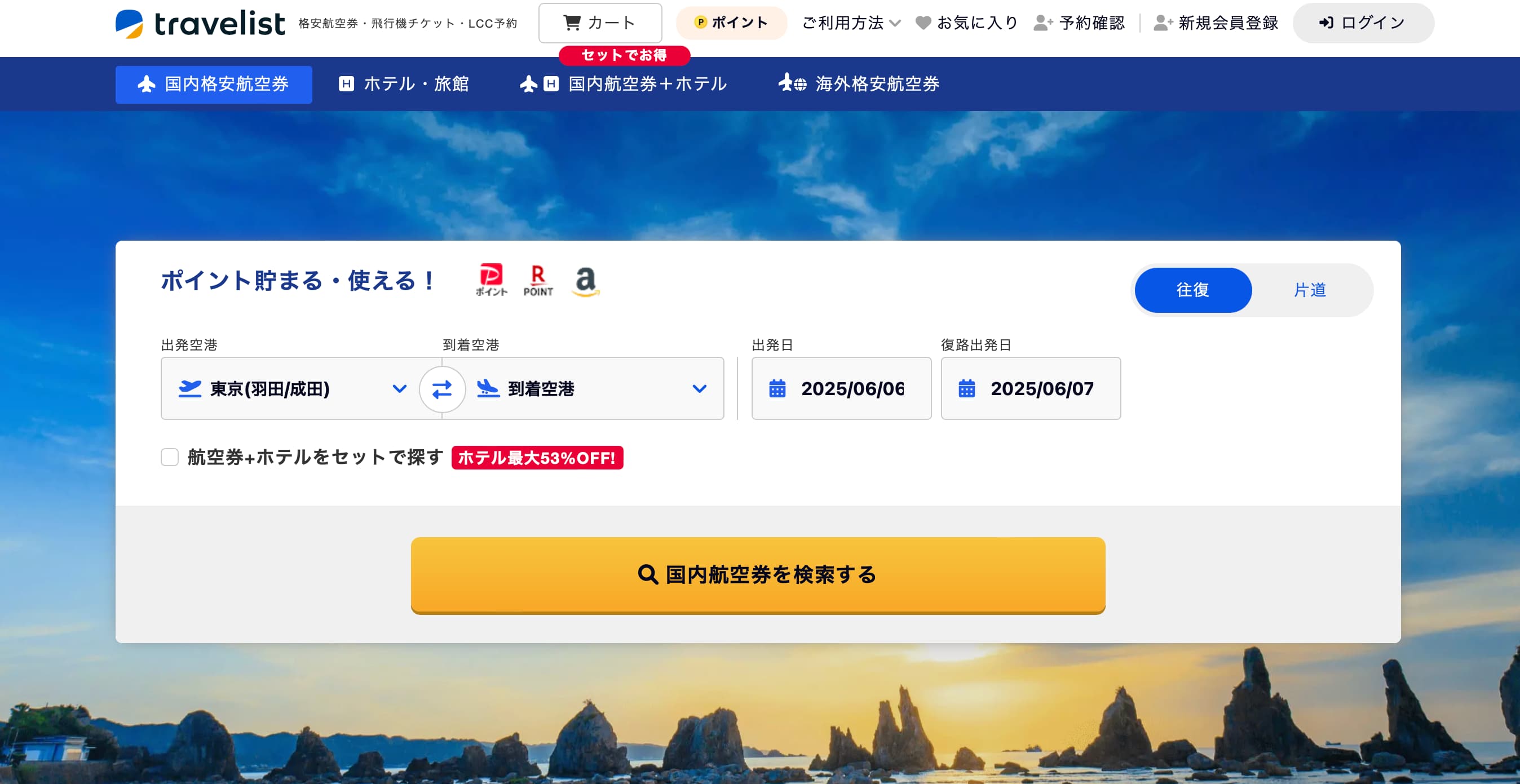 トラベリストはポイントがお得に貯まる国内格安航空券の予約サイト!