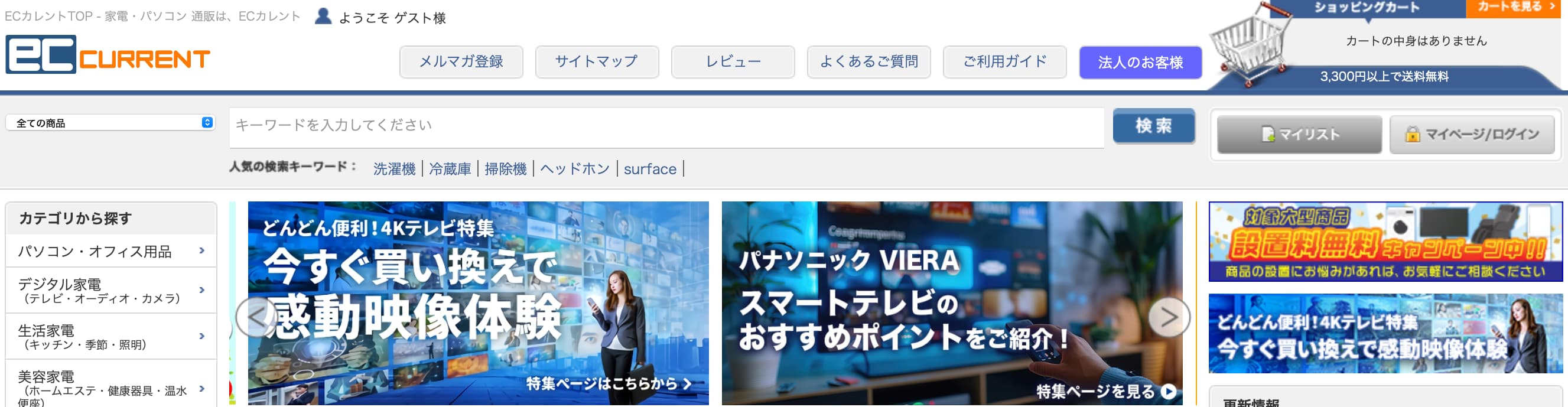 価格や商品は常に更新していて、サイト内ではリアルタイムで割引になった家電もチェックできます。